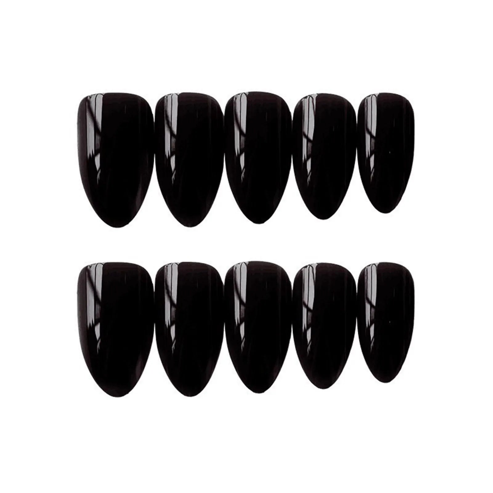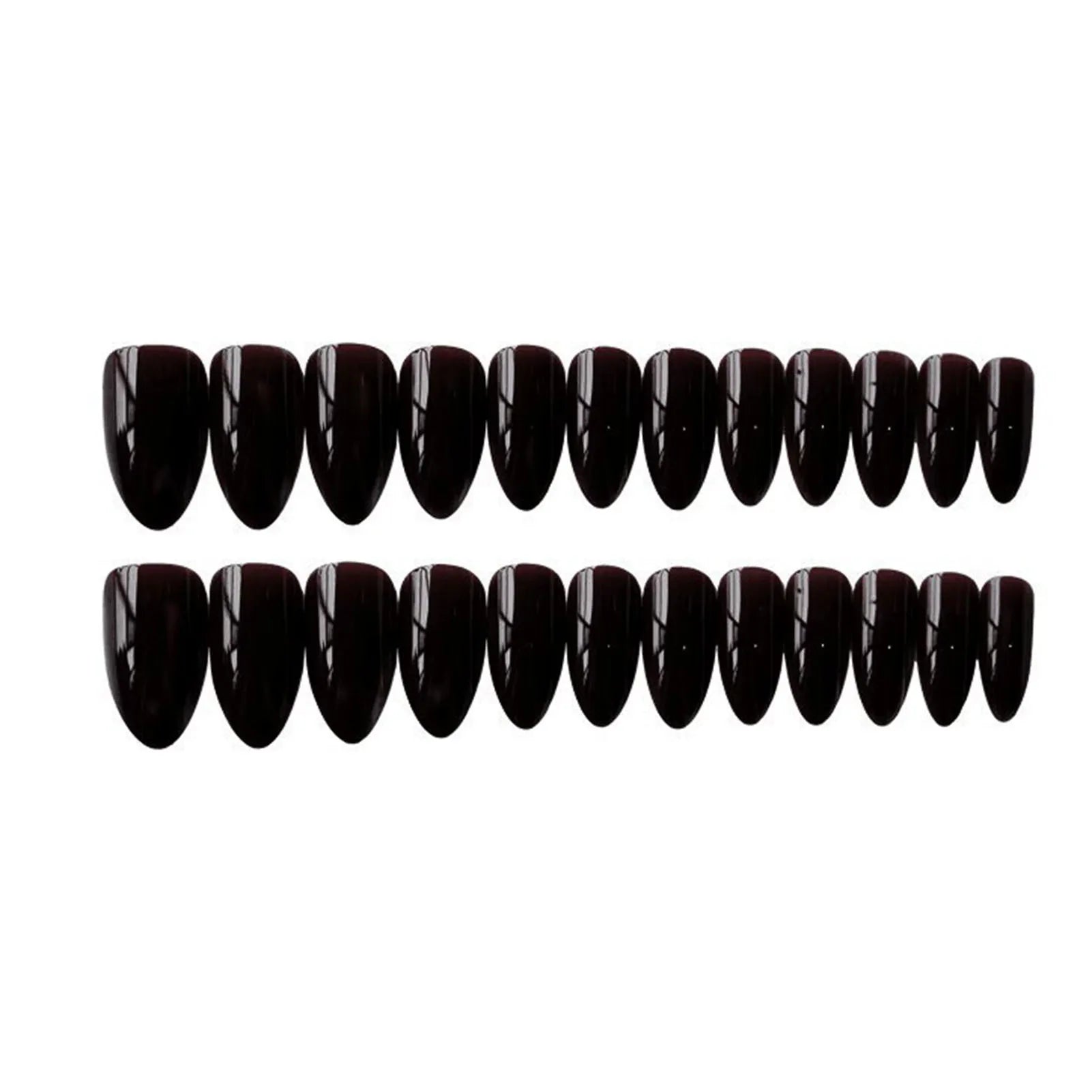 24pcs Glossy Black False Nails Nude Color Short Almond European Wearable nails