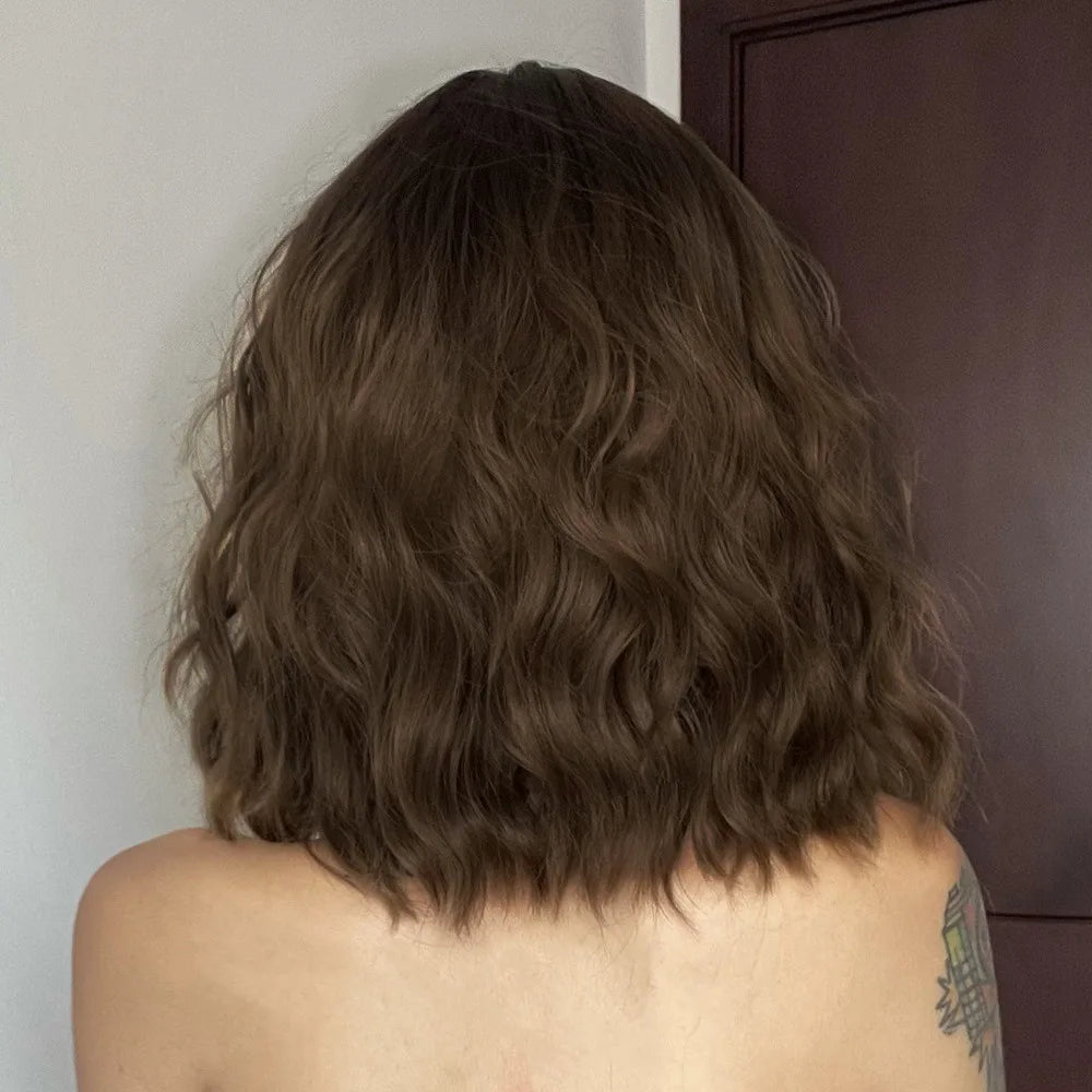 Fashion wig Women's mid-length curly hair air bangs Burgundy shoulder length corn perm synthetic fiber wig set
