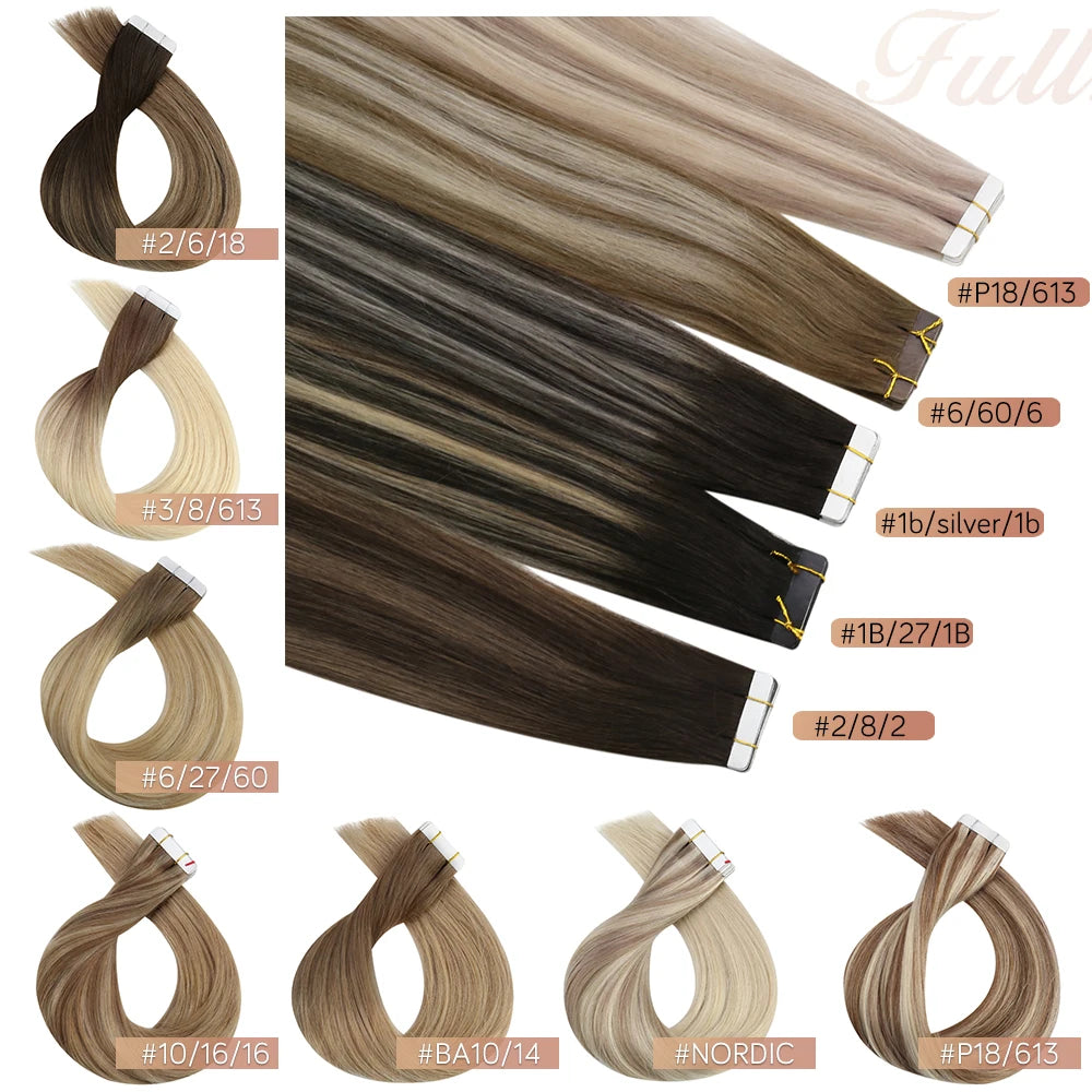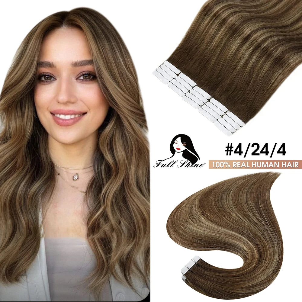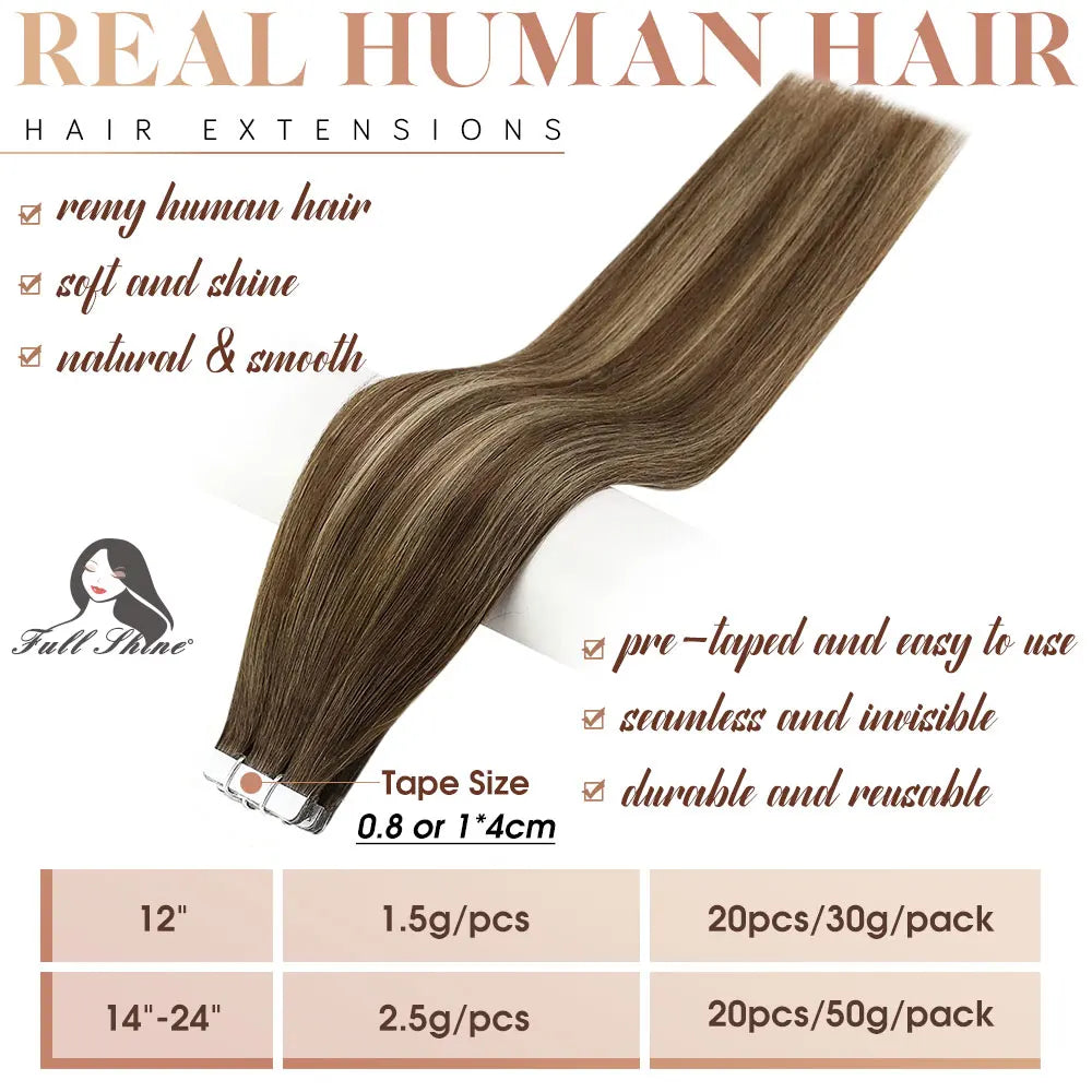 Full Shine Tape in Human Hair Extensions 100% Remy Natural Human Hair Extensions Tape in Omber Blonde Hair Extensions for Women