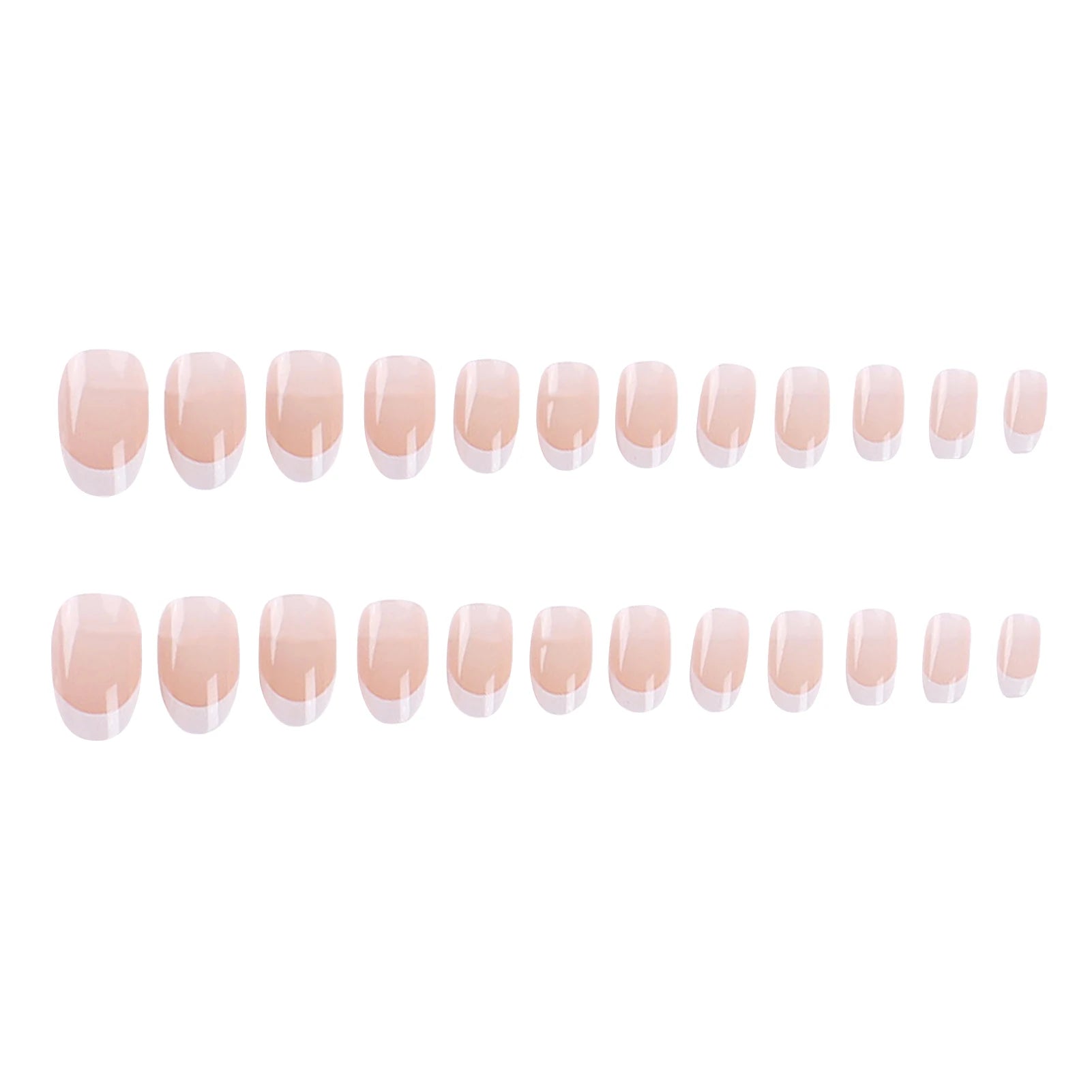 Nude Color Fake Nails for Women and Girls Short Round Head Press on Nails White French Tip