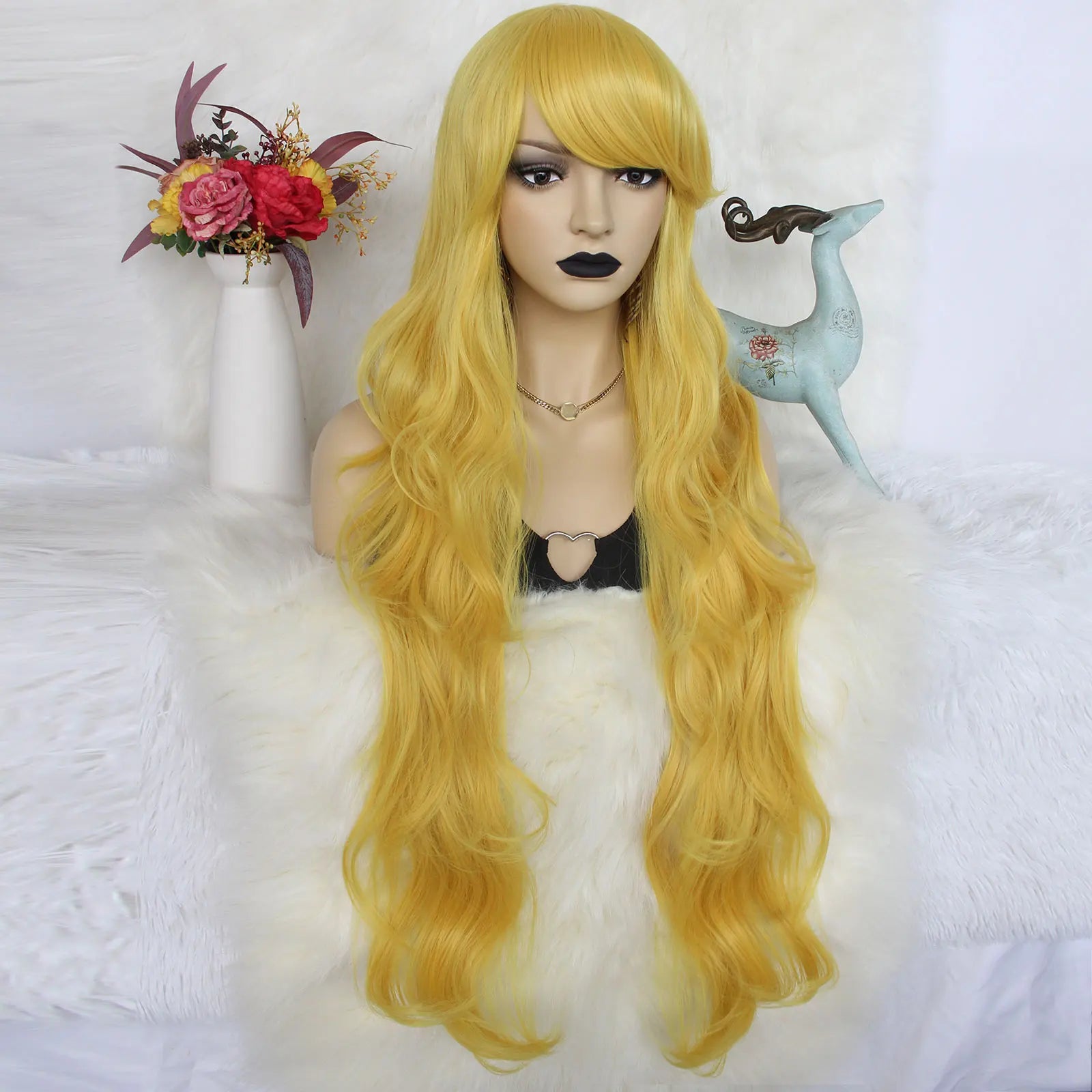 Synthetic hair 30 inches long yellow, loose body wavy and sexy wig with flat bangs,