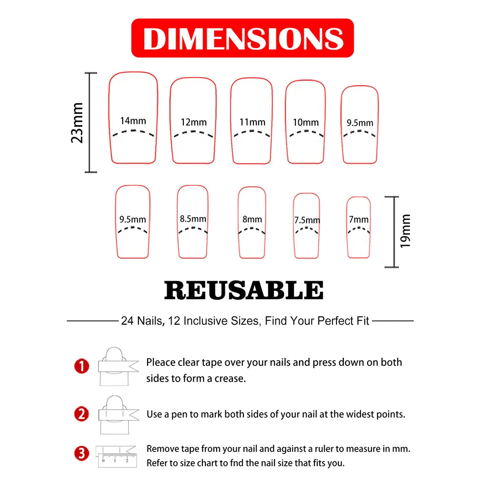 Women Girls 24Pcs/Set Middle Size quare Rose Red French Colorful Flower Full Coverage Wearable Nail Art Fake Nails